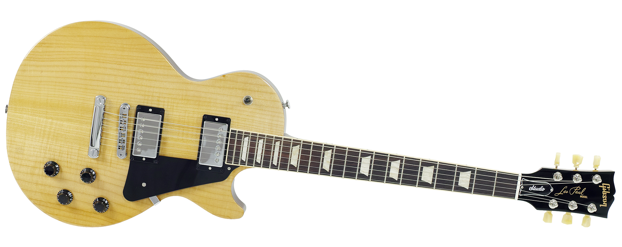 Gibson Les Paul Studio Figured Top E-Gitarre, Antique Natural, mit Gigbag  |  Gibson USA Item no. 66462 Die Les Paul Studio verkörpert eine auf das Wesentliche reduzierte Les Paul mit Fokus auf Spielkomfort und klangliche Flexibilität - mit dem Slim-Taper-Neck und den splitbaren, heiß gewickelten Humbuckern ist das ein Leichtes. Sie bringt alle wesentlichen Zutaten einer Les Paul mit, wie etwa Mahagonikorpus mit Ahorndecke, Humbucker-Pickups und einen eingeleimten Hals, nur eben optisch etwas schlichter gehalten und somit sehr freundlich im Preis. Body Material: Mahogany Top Material: Maple Weight Relief: Ultra-Modern Finish: Gloss Nitrocellulose Lacquer Neck Material: Mahogany Neck Profile:Slim Taper Fingerboard Material: Indian Rosewood Fingerboard Radius: 12" Number of Frets: 22 Medium Jumbo Nut Material: Graphtech Nut Width: 43.05mm Inlays: Acrylic Trapezoids Bridge: Aluminum Nashville Tune-O-Matic Tailpiece: Aluminum Stopbar Tuners: Gibson Vintage Deluxe with Keystone Button Pick Guard: Black Neck Pickup: Burstbucker Pro Bridge Pickup: Burstbucker Pro Controls: 2 Push/Pull Volumes (Coil-Tap), 2 Tones & Toggle Switch inkl. Gibson Soft Shell Case Gig Bag Gewicht: 3,5 kg