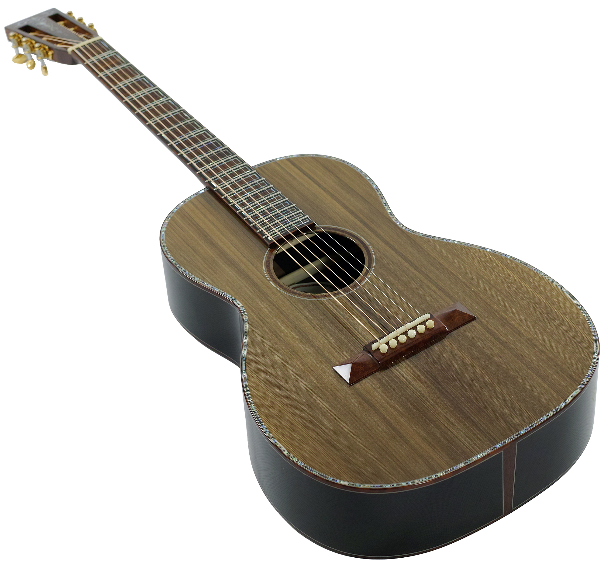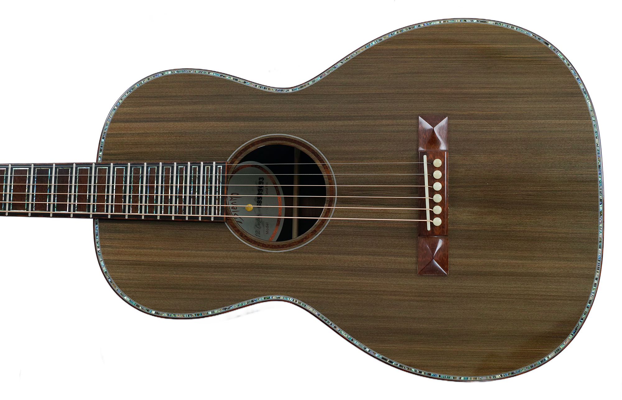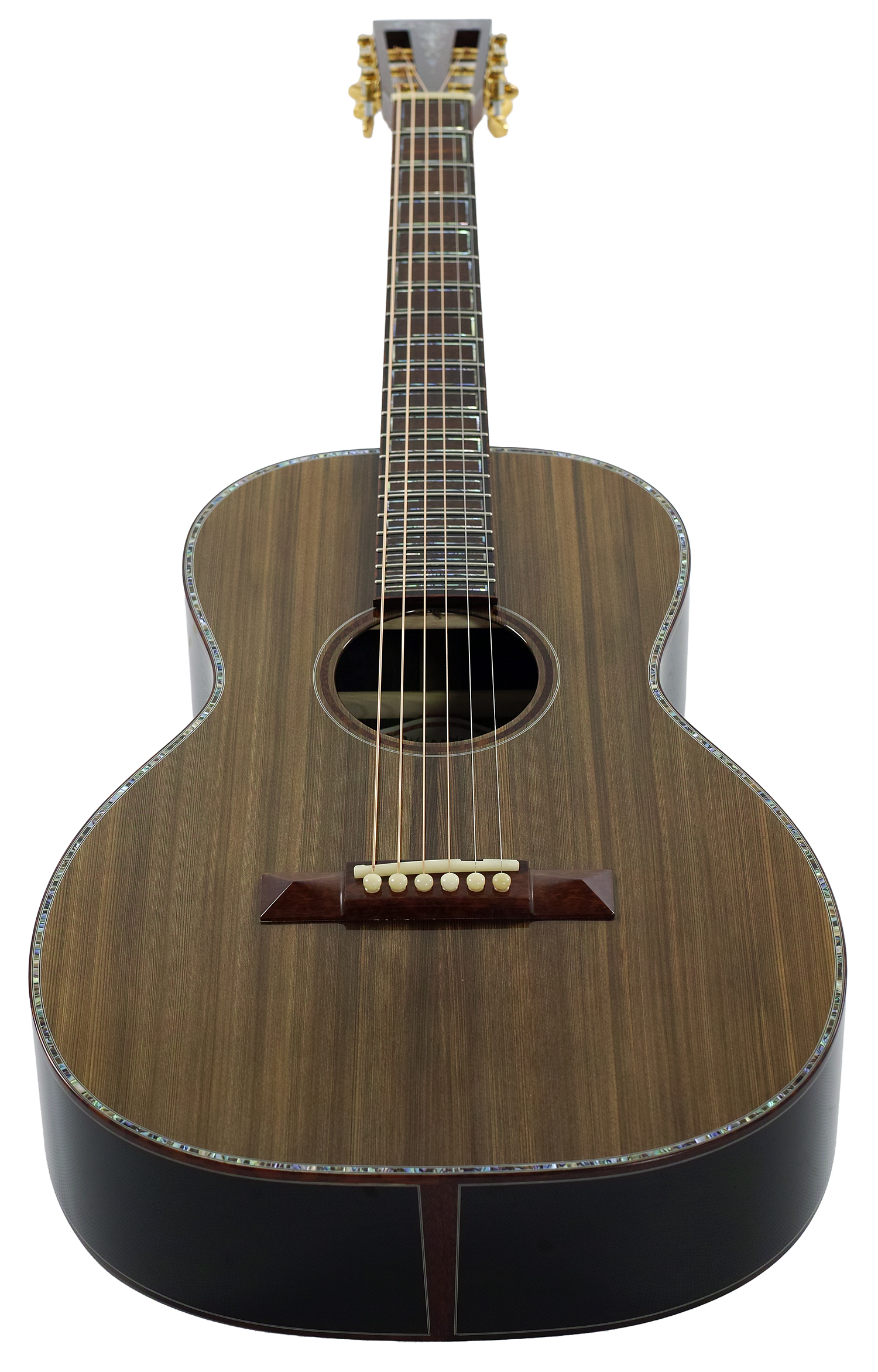 Hsienmo OO-12 Custom Thousand Year Ancient Sitka Spruce+African Blackwood  |  inkl. Case Item no. 66468 Hsienmo hat sich wieder an eine berühmte Vorlage gehalten, dieses Mal an die unter Insidern als "Ghost Oak" bekannte 00-Gitarre. Im Original wurde eine 8000-jährige Eiche für den Korpus und eine 3000-jährige Fichte verbaut - zu astronomischen Preisen. Hsienmo ist es gelungen, das ganz besondere Flair und die Ausstrahlung eines solchen Instruments einzufangen, zu einem Preis, der ziemlich "down to earth" ist. Der Korpus besteht aus "African Blackwood", ein exotisches Holz, das aufwändig zu verarbeiten ist sowie einer Decke aus 1000-jähriger Fichte. Der Sound besticht durch Tiefe und runden, warmen Charakter - ein echtes Ausnahme-Instrument. Li Chen mit seiner Marke "Hsienmo", die übrigens nach seiner Tochter benannt ist, orientiert sich mit seinen Gitarren an den großen Klassikern. Er kopiert sie allerdings nicht nur, sondern hebt sie mit innovativen Detaillösungen auf ein neues Level. Dazu gehören etwa ein geschraubter Hals, was bei Steelstringgitarren extrem selten anzutreffen ist. Ebenso ein "floating fretboard", also ein freischwebendes Griffbrett über dem Korpus, so dass Verspannungen zwischen den Hölzern auszuschließen sind. Desweiteren sind je nach Modell ausgehöhlte Bracings im Einsatz, karbonverstärkte Hälse, ultradünnes UV-Finish und bei bestimmten Modellen sogar Decken in Doubletopbauweise, um auch noch das letzte Quentchen Sound herauszuholen. Der Aufwand hat sich gelohnt: etablierte Gitarrendesigns mit technischen Details auf Topniveau zu einem erstaunlich freundlichen Preis! Details: * Decke: massive 1000 Jahre alte Sitka-Fichte * Zargen und Boden: massives afrikanisches Blackwood * Bracing: Adirondack scalloped X-Bracing * Mechaniken: Grover Tuners Open Gear Gold * Hals: 1 teilig afrikanisches Mahagoni mit Carbon Verstärkung und Binding aus Schlangenholz * Kopfplatte: slotted head stock * Griffbrett: Ebenholz mit Schlangenholz/Abalone Inlays * Korpusbinding vorne: Schlangenholz und Abalone * Korpusbinding hinten: Schlangenholz * Sattel: geölter Kamelknochen * Stegeinlage: Kamelknochen * Steg: Schlangenholz * Pins: geölte Kamelknochen (zusätzliche Pins aus Schlangenholz mit Abalone Dot liegen bei) * Schalllocheinlage: Schlangenholz * Mensur: 630 mm * Sattelbreite: 43,5 mm * Lackierung: Nitro-hochglanz * Coated Phoshor Bronze 12-53 * Gewicht: 2,23 kg * inkl. Koffer