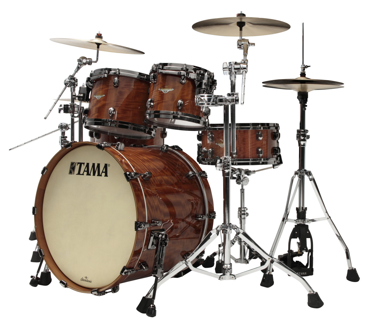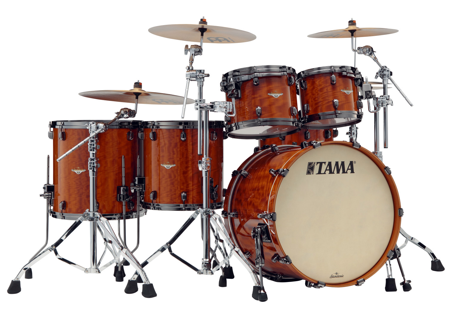 Tama Starclassic Bubinga Ltd. Shell Set 22"/10"/12"/14"/16" - African Cherry  |  BE52ZBAS-GAC; Black Nickel Hardware Art.-Nr. 66442 LIMITED EDITION - Legendärer Sound: Tiefer, kraftvoller Klang aus seltenem afrikanischem Bubinga. - Originalgetreu: 9-lagige Kesselkonstruktion wie das Original von 2006. - Limitiertes Comeback: Exklusives Modell 2026 - streng limitiert. - Edles Design: Afrikanisches Kirschholz & schwarze Nickel-Hardware. - Von Profis gefeiert: Gelobt von Drumming-Stars wie Duplantier & Casagrande. Im Jahr 2006, als Schlagzeuge noch überwiegend aus Ahorn oder Birke hergestellt wurden, setzte TAMA mit der Einführung einer revolutionären neuen Serie ein bahnbrechendes Zeichen: Starclassic Bubinga. Dieses Kit veränderte schnell die Landschaft moderner Schlagzeuge. Sein tiefer und kraftvoller Klang stellte die herkömmlichen Vorstellungen davon, wie Schlagzeuge klingen können, in Frage und eroberte sofort die Welt im Sturm. Starclassic Bubinga etablierte sich als neuer Maßstab für High-End-Schlagzeuge und festigte seinen Platz in der Welt des Schlagzeugspiels. Auch nach seiner Einstellung im Jahr 2018 blieb sein Einfluss ungebrochen. Künstler, die heute im Rampenlicht der Welt stehen, wie Mario Duplantier und Eloy Casagrande, loben es weiterhin und bestätigen seinen einzigartigen und kraftvollen Klang. Jetzt, im Jahr 2026, kehrt dieses legendäre Instrument endlich zurück - wiedergeboren als limitiertes Modell. Diese Neuauflage reproduziert originalgetreu die ursprüngliche 9-lagige, 6 mm dicke Kesselkonstruktion (7 mm für Snare und Bassdrums). Das aus seltenem afrikanischem Bubinga gefertigte dichte und schwere Holz liefert donnernde Tiefen, immense Kraft und einen für Bubinga einzigartigen dunklen Klang - ein beeindruckendes Klangerlebnis. Um den tiefen Basscharakter des Holzes noch weiter zu betonen, verfügen die Toms und Floor Toms über tiefere Kesselgrößen, während die Bassdrum ohne Tomhalter-Basis auskommt - Entscheidungen, die getroffen wurden, um die natürliche Resonanz und den satten Klang des Holzes zu maximieren. Für die äußere Schicht wurde ein kräftiges afrikanisches Kirschholz gewählt, das sich durch hohen Kontrast und Definition auszeichnet. In Kombination mit eleganten Black Nickel-Hardware-Teilen strahlt dieses Kit eine beeindruckende Präsenz aus, die optisch zu seiner klanglichen Wirkung passt - und die Aufmerksamkeit und Fantasie aller auf sich zieht, die es sehen und hören. Erleben Sie den Klang einer Legende. Konfiguration: - 22"x16" Bassdrum - 10"x8" TomTom - 12"x9" TomTom - 14"x14" FloorTom - 16"x16" FloorTom Kessel: - Toms: 9ply, 6mm - Bassdrum: 9ply, 7mm Farbe: Gloss African Cherry Kesselhardware: Black Nickel Es handelt sich um ein Shell-Set OHNE Snare, Hardware und Becken!