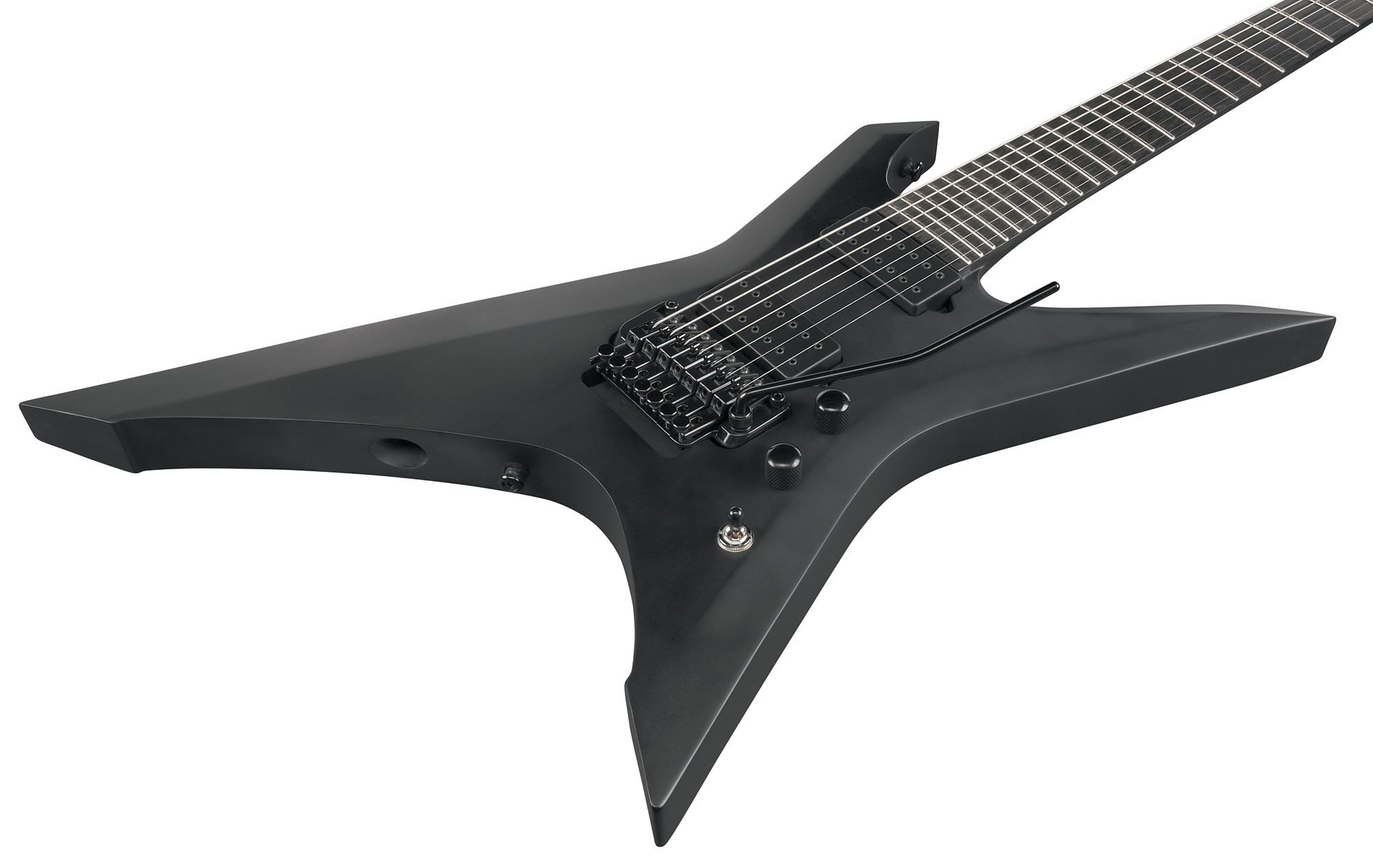 Diese sind bewusst spartanisch gehalten, und Sie werden hier keine Funktion finden, die nicht direkt zu den knochenerschütternden, erdbebenden Tönen beiträgt, die diese Gitarren hervorbringen. Die nächste Generation der Iron Label-Gitarren setzt diese Philosophie fort und hebt die rohe Metal-Energie auf ein völlig neues Niveau. Sie haben ein komplett schwarzes Design und ihre leistungsstarke Elektronik macht sie zu einigen der härtesten Metal-Gitarren, die Ibanez je hergestellt hat.