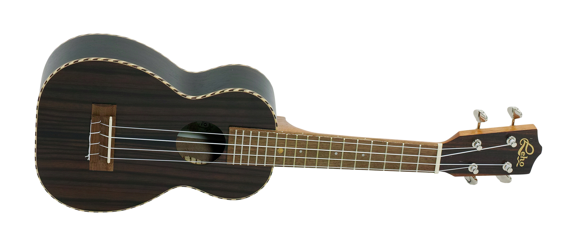 Leho Ebenholz Sopran Ukulele LHUS-ALEB  |  Korpus Ebenholz laminiert, inkl. Gig Bag Item no. 55569 "Leho" bedeutet in Hawaiianisch Muschel. Auch wenn die Ukulelen optisch weit weg von einer Muschel sind, so besagt eine Volkslegende der Hawaiianer, dass Muscheln immer die elegantesten und romantischsten Töne flüstern. Elegant sind die "Leho" Ukulelen allemal und für den romantischen Ton, muss zwar der Spieler selbst sorgen, der sich sicher an der Ausgewogenheit und Fülle des Klanges erfreuen wird! Features *Decke: Ebenholz laminiert *Zargen/Boden: Ebenholz laminiert *Griffbrett: Walnuss *Brücke: Walnuss *Mechaniken: Grover Chrom *gewölbter Boden *Finish: Satin matt