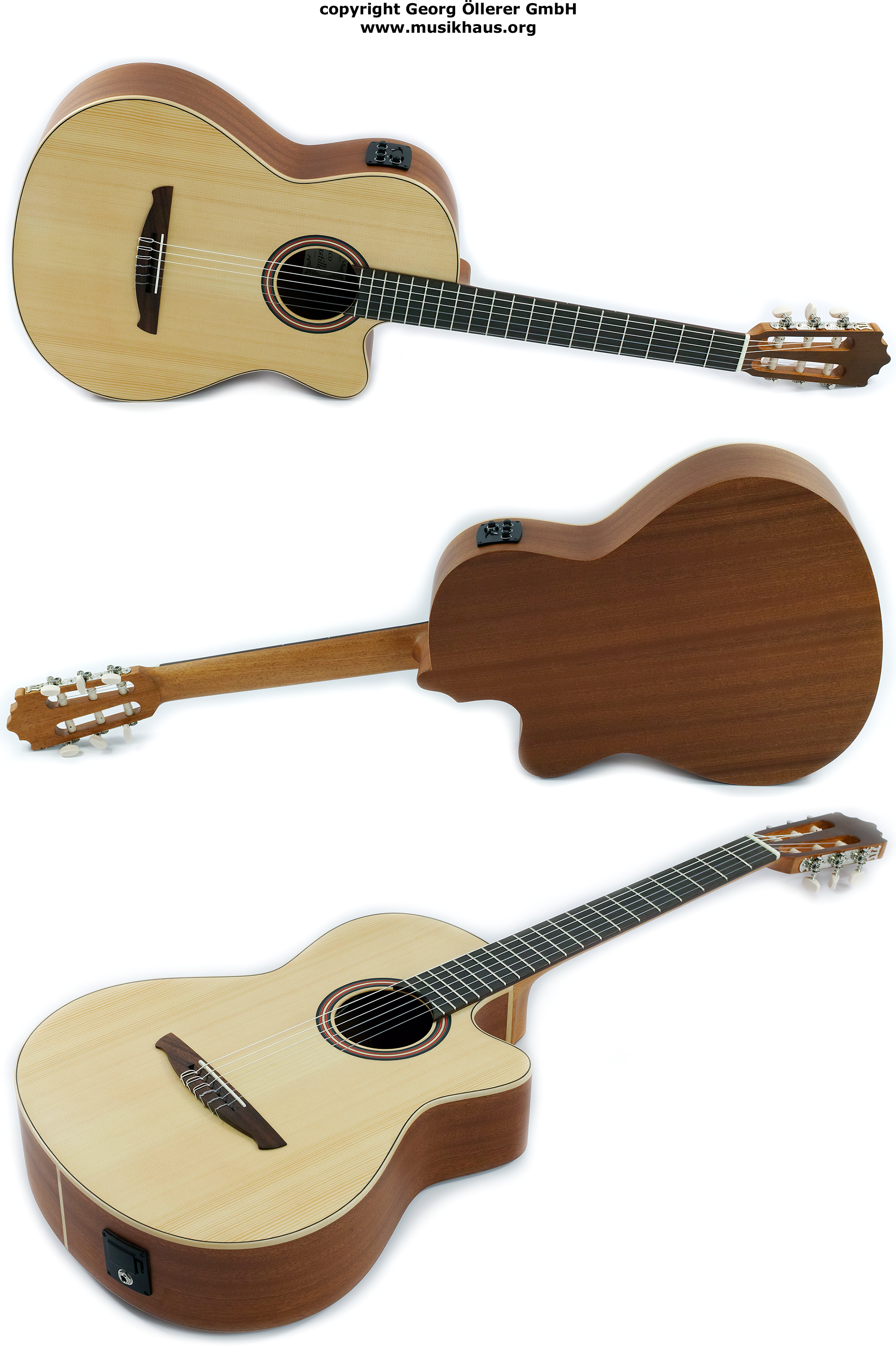 Das Modell 221CCE mit Cutaway und Tonabnehmer besticht durch seinen angenehm schlanken "Crossover-Hals" mit nur 48mm Sattelbreite.
