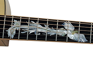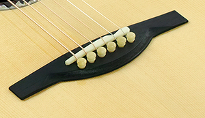 Zum orignären Design von Utopia Guitars zählen nicht nur optische Merkmale, sondern auch bauliche Details, die den Klang entscheidend mitgestalten. Sattel, Stegeinlage und Stegpins aus Knochen, aber vor allem die sorgfältig studierte Platzierung und handwerklich penible Ausführung des X-Bracing am Boden sind hier die "Key Driver" für perfekte Klangentfaltung.