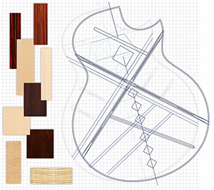 Ein bestimmtes Soundideal in einer Gitarre umzusetzen unterliegt sehr vielen Einzelaspekten, daher ist die allererste Überlegung in diesem Planungsprozess, wie soll die Gitarre klanglich ausgerichtet sein? Davon hängt u.a. die Auswahl des Holzes, das richtige "Match" von Decken- und Bodenholz und die Ausrichtung des Bracing ab. Diese Faktoren beeinflussen das Frequenzspektrum und somit unmittelbar den Sound. Vom Anschlagen der Saite bis zum Erklingen eines Tons ist ein langer Weg.