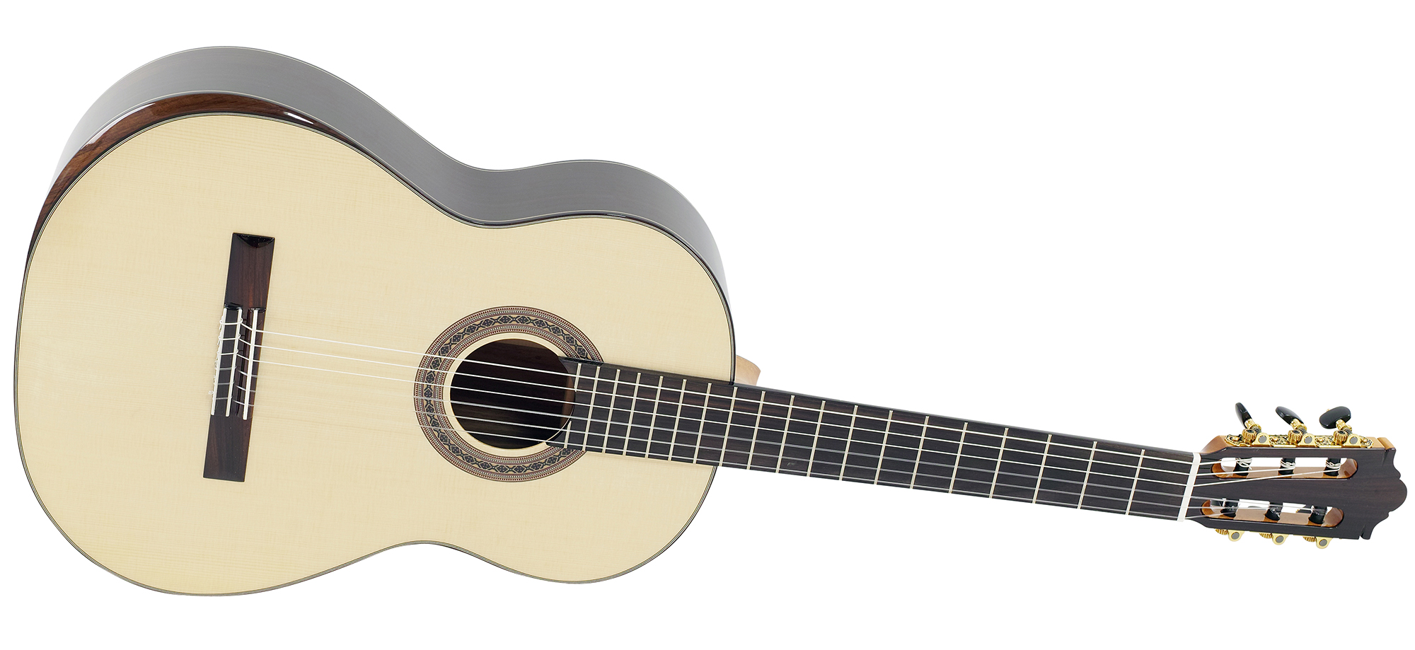 Concerto CG-50 PF Bevel Konzertgitarre, massive Fichtendecke  |  Korpus Palisander, inkl. Softcase Item no. 66325 Die Konzertgitarren unserer Eigenmarke Concerto bieten ein Preis-/Leistungsverhältnis, das einen staunend zurücklässt. Erstklassige Hölzer und Komponenten, hochwertige Verarbeitung und einen Klang, den man ein paar Preisklassen höher vermuten würde. Sowohl für ambitionierte Ein- und Aufsteiger, als auch für anspruchsvolle Spieler mit professioneller Erwartungshaltung führen wir eine erlesene Auswahl an Konzertgitarren. Concerto-Gitarren werden exklusiv für uns gefertigt und wachsen je nach individuellem Geschmack mit dem Können des Spielers mit. Dabei verbinden sie ansprechenden, kraftvollen Klang mit feiner, edler Ästhetik. Klassische Gitarre in Reinform! Als ganz besonderes Feature kommt die CG-50 PF mit einem Armrest ("Bevel"), der für den Unterarm eine komfortable Auflage bietet. In dieser Preisklasse ein Zuckerl, das sonst nur in deutlich höheren Preisregionen zuhause ist. Spezifikationen: *Decke: massive Fichtendecke *Korpus: Palisander *Hals: Mahagoni *Griffbrett: Palisander *Mensur: 650mm *Sattel: 52mm Breite *Mechaniken: Der Jung *Lackierung: hochglanz *inkl. Softcase